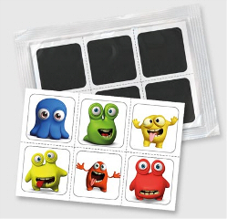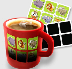 Especially popular and successful among children are emblems for sticking on cups, which change their layout after pouring a hot beverage into the cup.