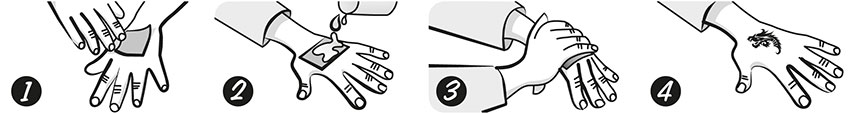 The product is safe for skin, his application and removal are very easy. On the backpaper you can print instructions of use or any other text. Our customers may choose between many interesting ready designs or order tattoos with their own logo.